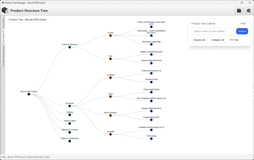 A visualização da árvore do produto transforma a estrutura técnica em algo claro, compartilhável e verificável. Ela permite que o time enxergue rapidamente relações entre sistemas, subsistemas e componentes, facilitando a validação do escopo, a identificação de lacunas e a discussão técnica no DFMEA.